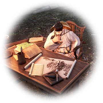 아침의 나라 곳곳을 돌아다니며 지도를 만들고 있는 지도 학자.